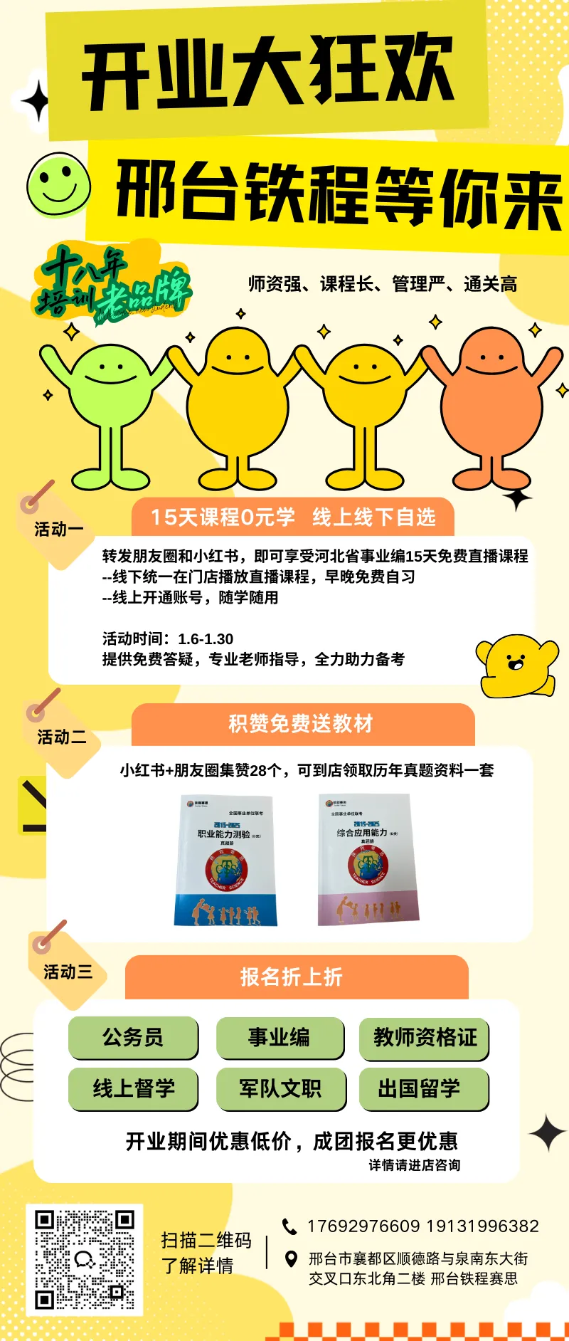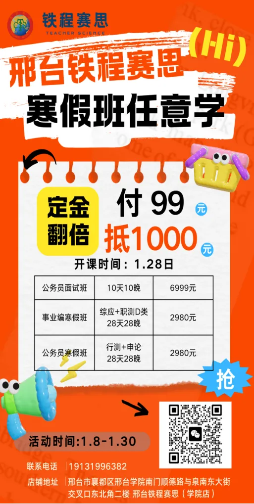 今天,我们将这份专业与沉淀带到邢台,致力于为本地有志于投身公职、教育事业的您,提供家门口的一站式上岸解决方案!