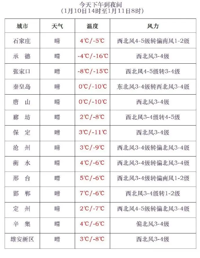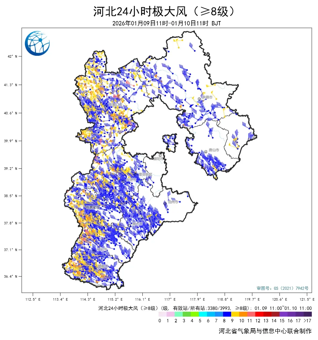 受冷空气影响,今天下午到夜间全省大部分地区风力仍然较大。河北省气象台1月10日11时发布天气预报显示,1月11日夜间到12日白天,张家口、承德,以及保定、石家庄、邢台、邯郸四个地区的西部有西北风4到6级,阵风7到8级,局地可达9级以上。11日夜间,渤海海域和沿海地区有西南风5到6级,阵风7到8级。
