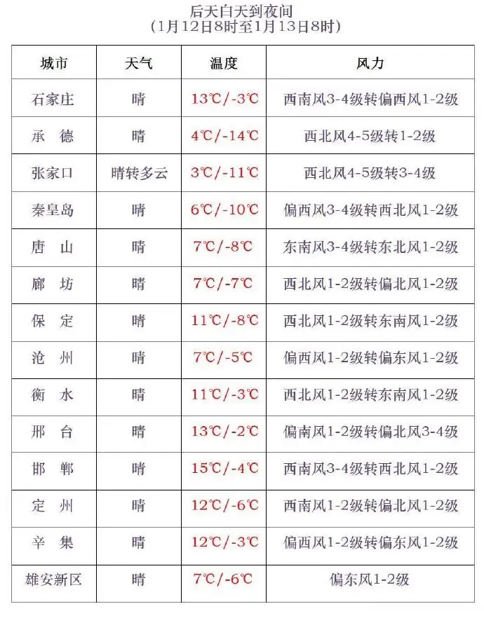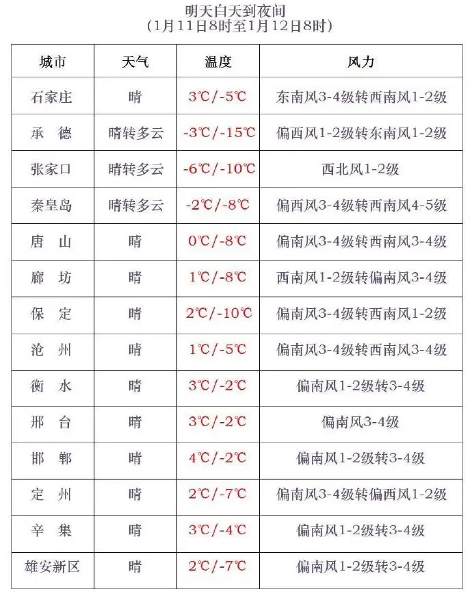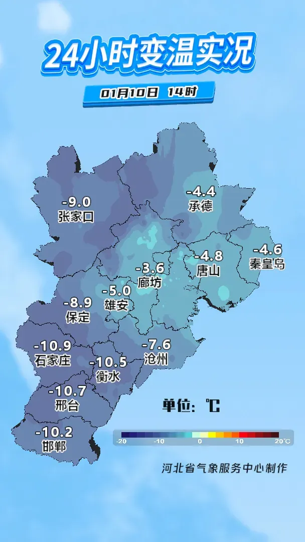伴随着大风而来的,是气温的急剧下滑。昨夜,在冷空气和大风的共同作用下,气温一路走低。根据国家气象站观测数据统计,今日8时,我省北部地区气温普遍低于-10℃,其中张家口康保最低,为-19.2℃;中南部气温多在-2~2℃之间,邯郸最高,为2.9℃。与昨日同时刻相比,大部分地区气温下降,西部山区降幅较大,张家口阳原降幅最大,为12℃;局部地区气温上升,保定顺平升幅最大,为6.6℃。