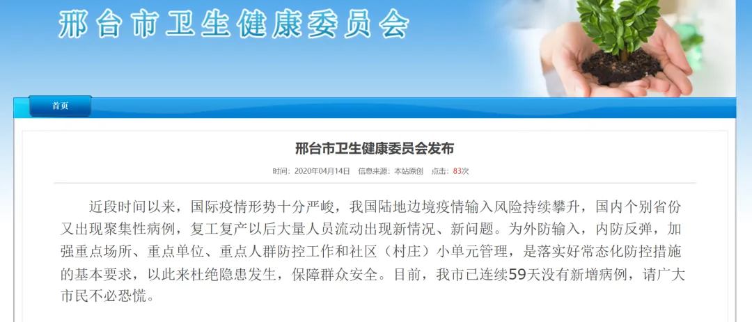 目前,邢台市已连续59天没有新增病例,请广大市民不必恐慌