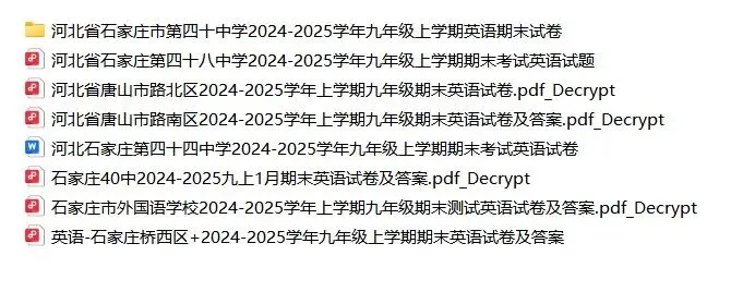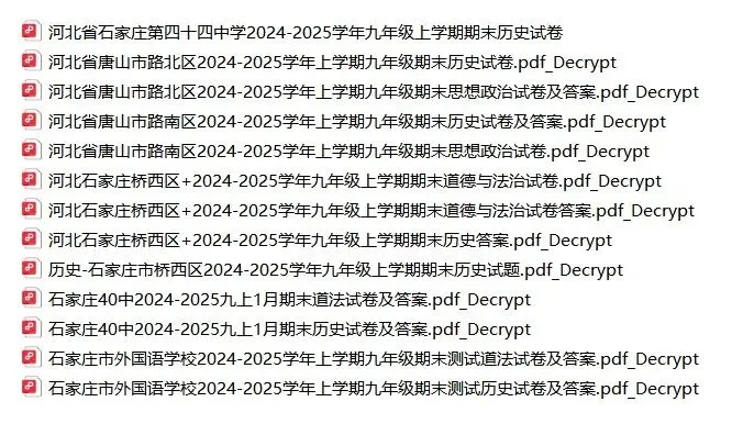 石家庄43、40、48、81、桥西、新华、长安初一、初二、初三年级第一学期期末试卷