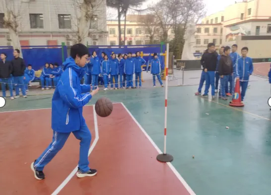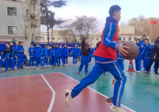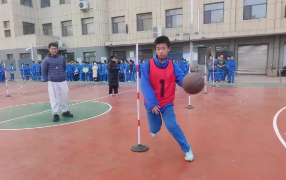 1月9日下午,八年级在南校区篮球场举办蛇形拍球绕杆趣味阳光运动比赛。各班选手需控球蛇形绕过6杆并返回,再传递到下一名同学手中,直至30名选手全部完成。这项活动不仅是速度与稳定性的比拼,增强了同学们的体育锻炼意识,提升了运球基本技能;更增强了班级凝聚力,培养了团队合作精神,呈现出阳光运动一小时丰富多彩的一面。活动现场气氛热烈,助威声、呐喊声响彻校园,展现出富满生机与活力的校园生活。
