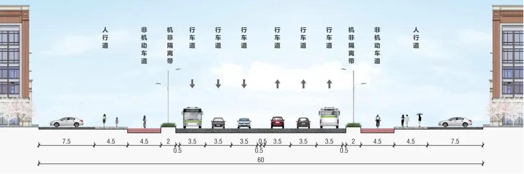 全长约5600米(其中拓宽改建段约700米;新建段约4900米),红线宽度60米,采用城市主干路标准,双向六车道,设计速度50公里/小时。建设内容包含道路、桥梁、管线、交通设施、照明、绿化等。