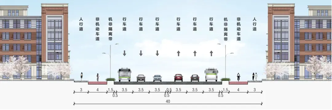 全长约700米,红线宽度40米,采用城市主干路标准,双向六车道,设计速度50公里/小时。建设内容包含道路、管线、交通设施、照明、绿化等。