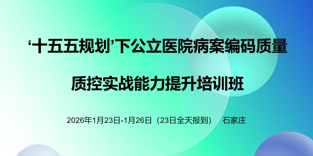 随着“十五五”规划的深入推进,国家医改、DRG/DIP支付方式改革、公立医院绩效考核(“国考”)等政策对医院病案数据质量提出了更高要求。病案首页数据已成为医院管理、医保支付、等级评审、学科建设的重要基础。为帮助各医院全面提升病案编码准确性、质控实战能力与数据治理水平,推动医院高质量发展,我院将于2026年1月23日至26日举办“2026年度‘十五五规划’下公立医院病案编码质量质控实战能力提升培训班”。