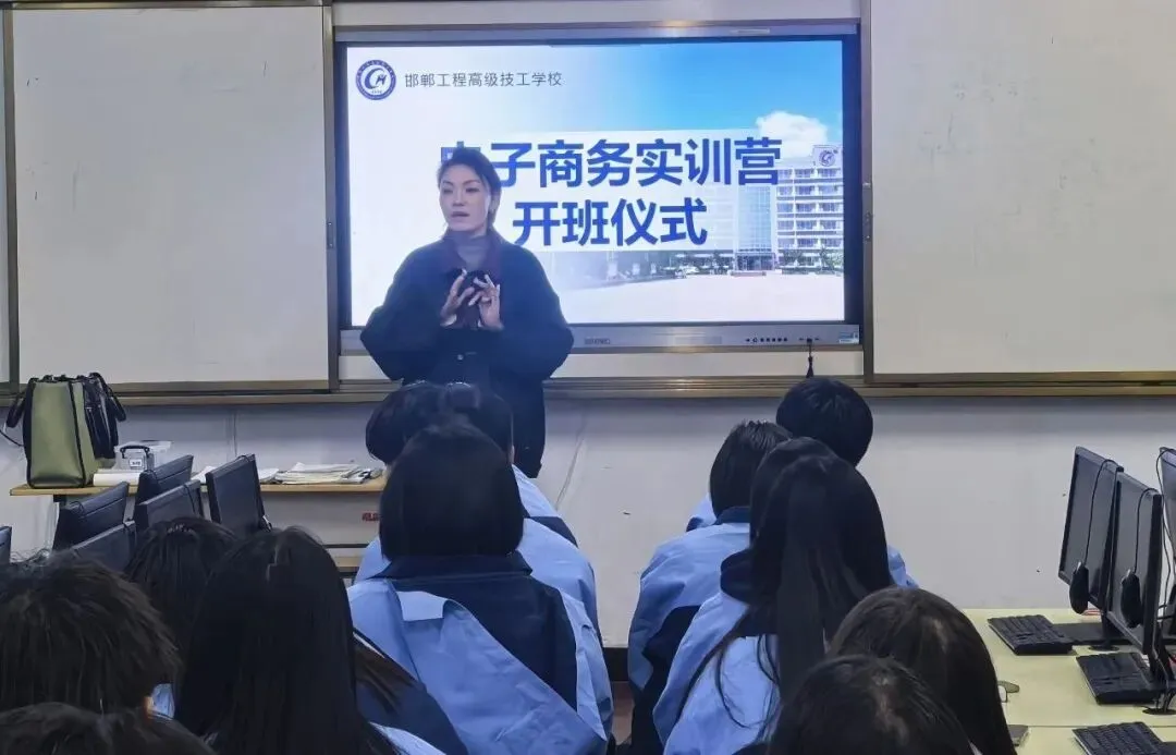 2026年1月10日,邯郸工程高级技工学校电子商务实训营开营仪式顺利举行。本次活动由教务处及实训处统筹组织,经过严格筛选,30名已具备短视频剪辑、基础运营与直播能力的学生脱颖而出,组成首届实训营团队。
