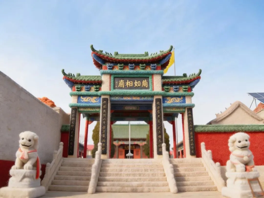 “蔺相如祠”的碑文隐在绒毛质感中,雅韵犹存,却多了几分憨态。穿越千年的智慧,在这一刻仿佛伸手就能轻轻抚摸。