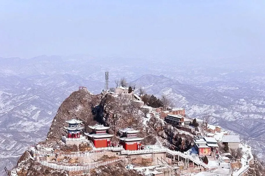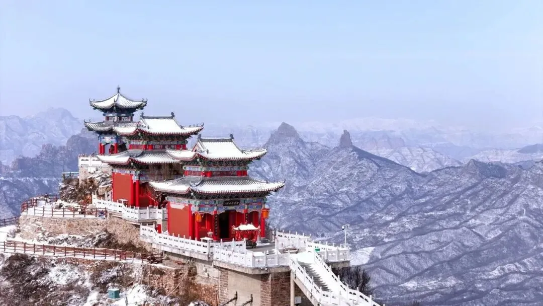 在阳光的照耀下,冰瀑闪烁着五彩的光芒,如梦如幻,将太行山冬日的壮美盛景定格在这一瞬间,让人不禁感叹大自然的鬼斧神工。