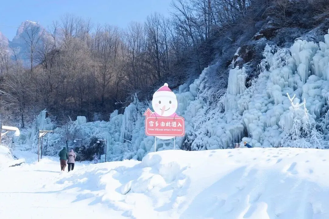 走进古武当山雪乡,首先映入眼帘的便是那壮观的冰川瀑布。巨大的冰瀑从山崖上倾泻而下,层层叠叠,晶莹剔透,仿佛是大自然用冰雪精心雕琢的艺术品。