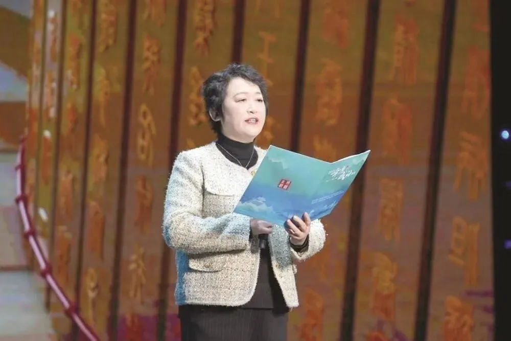 图为教育部政策法规司原巡视员、第七届国家督学顾问王家勤发布“2025年度成语”之“绿水青山”。