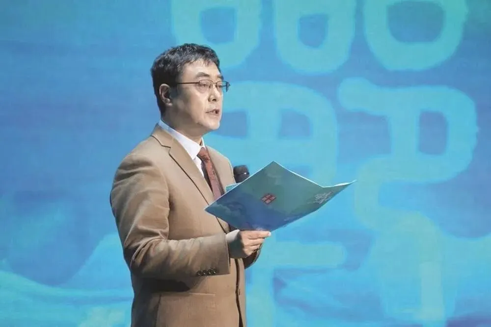 图为中国传媒大学教授、博导,国家语言资源监测与研究有声媒体中心主任邹煜发布“2025年度成语”之“海纳百川”。