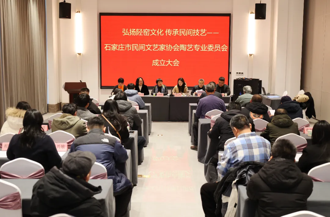 1月11日,石家庄市民间文艺家协会陶艺专业委员会成立大会在井陉县南横口陶瓷水镇召开。