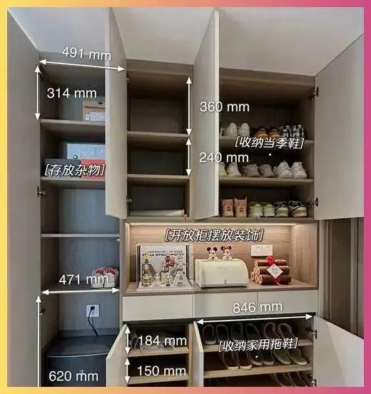 比如鞋区柜门做成滑动式,省开门空间;落包区不做整柜,只要30公分深度;挂区还能嵌在墙里,不占地儿。真正聪明的人,不是嫌地方小,而是能从狭小里挖出秩序感。