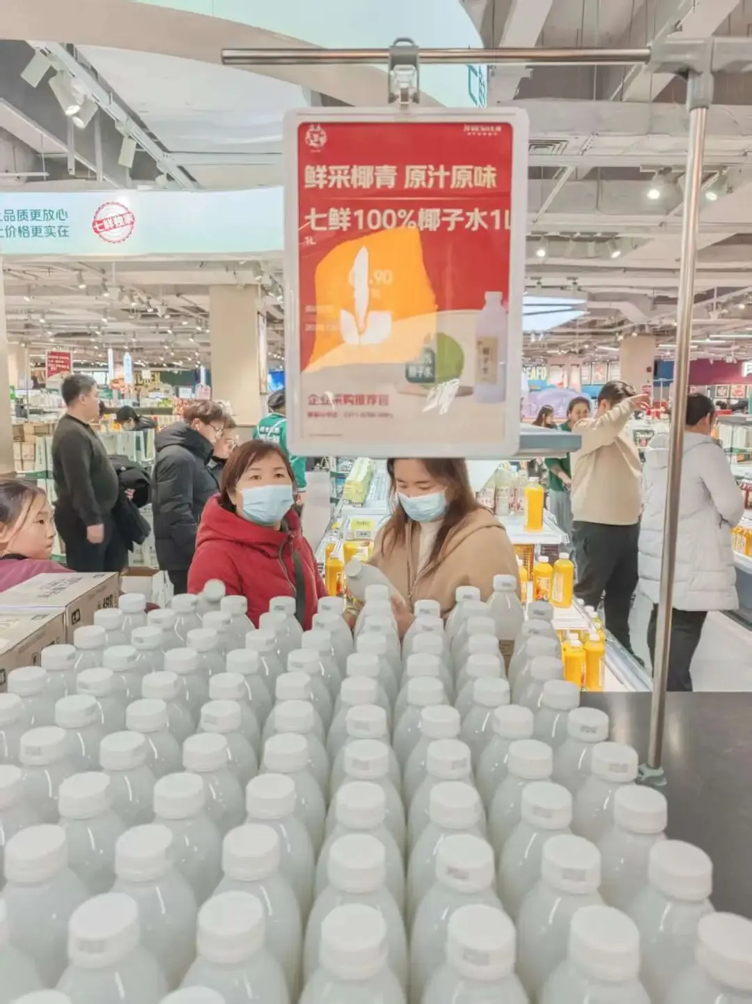 2、我确认了约10款产品,线上购物与线下实体店价格确认完全一样,包括三元鲜牛奶,七鲜自营的牛奶、酸奶和椰汁等等。线上店有优惠券,线下门店门口也可以扫码领优惠券结账的时候使用,因此线上线下购物,从价格的差别来看影响不大。