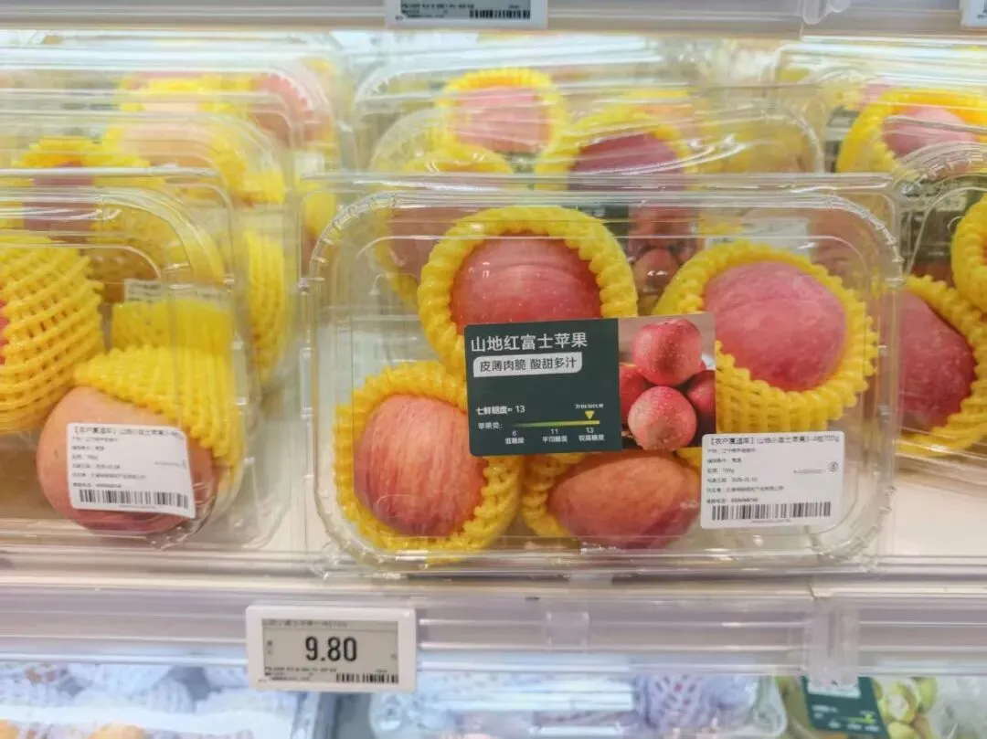 由于品质确实还不错,因此价格肯定也相对昂贵一些,不过有些产品价格也算实惠,如下图,4个红富士苹果9.8元,卖相还很好。