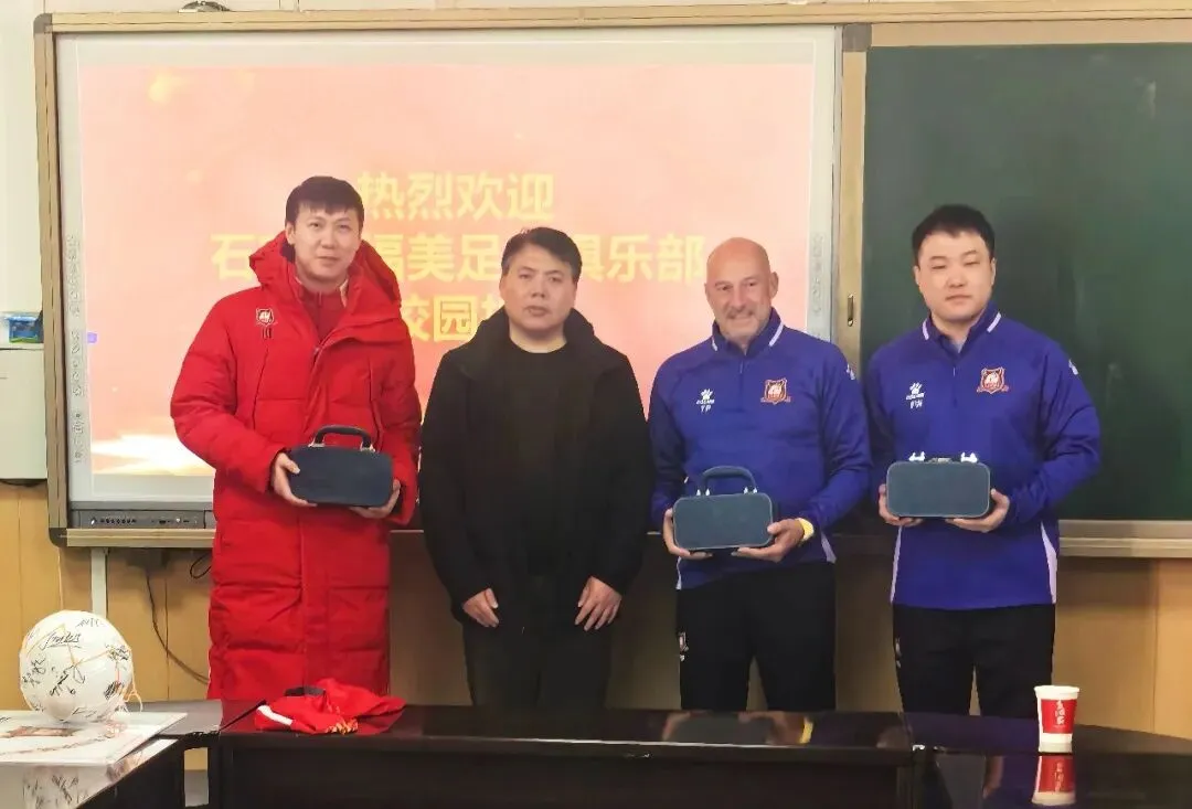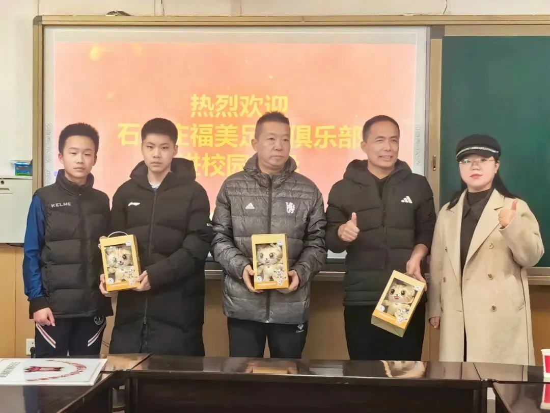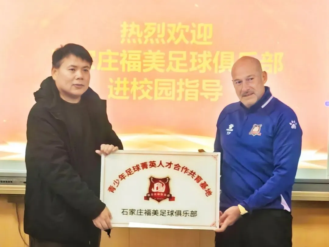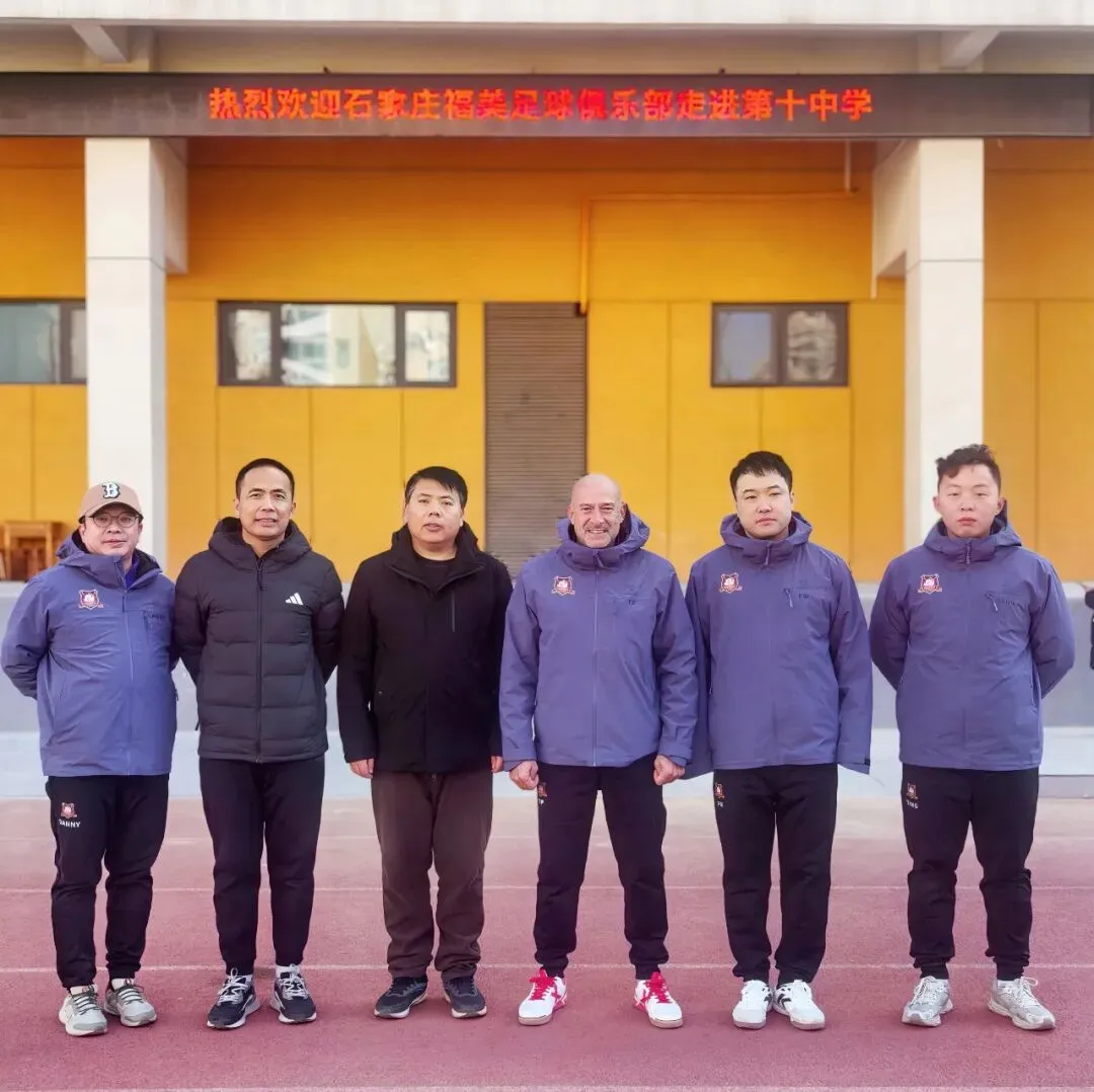 1月10日,石家庄福美足球俱乐部在常务副总经理冯维与主教练蒂诺·佩雷斯率领下,全队走进石家庄市第十中学,正式启动2026年度“五人制足球进校园”系列活动的首站行程。活动当天,福美俱乐部全体队员着装统一、精神饱满,受到该校党总支副书记、校长王英明等校方领导的热情欢迎。在校方陪同下,俱乐部成员观摩了校足球队日常训练,并给予现场技术指导。随后,福美队员与校队进行了一场轻松愉快的友谊赛,参赛学生均获得了由俱乐部新赛季装备合作伙伴——“运动方向体育装备”提供的卡尔美品牌运动装备。交流环节中,石家庄市第十中学教师团队也积极参与互动,与福美教练员、球员同场交流。在校长王英明带领下,该校教育副校长曹杰飞、教育处副主任张洪浩及足球教练吕博雅、杨晨等多位教师共同加入,现场气氛热烈。常务副总冯维、主教练蒂诺和助理教练唐斌斌亲自上场,引来师生阵阵喝彩。在校方召开的座谈会上,王英明校长介绍了学校近年发展成果,尤其在体育教学方面取得的突出成绩。主教练蒂诺分享了首次参与“五人制足球进校园”的体验与感受,常务副总经理冯维则代表俱乐部表达了推动校园足球发展的愿景与规划。仪式上,蒂诺教练代表福美俱乐部向石家庄市第十中学授予“石家庄福美足球俱乐部青少年足球菁英人才合作共育基地”牌匾,王英明校长接牌。双方还互赠纪念礼物,进一步巩固合作情谊。活动结束后,冯维与蒂诺一行在校方陪同下参观了校园体育设施,并就未来深化合作进行了务实交流。本次活动得到运动方向体育装备的大力支持,为校园足球推广注入了专业动力。————————————————————————