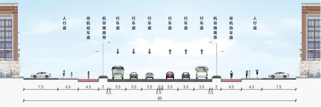 全长约700米,红线宽度40米,采用城市主干路标准,双向六车道,设计速度50公里/小时。建设内容包含道路、管线、交通设施、照明、绿化等。
