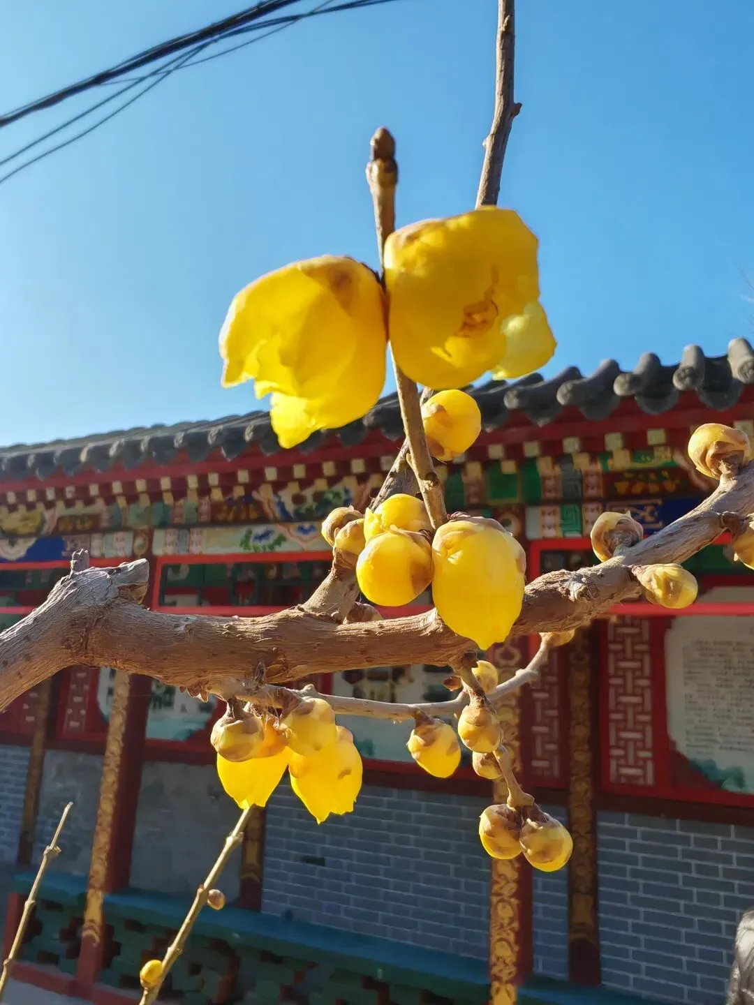 这周末天气真不错,躺家里可太亏了!我一拍大腿——骑车去鹿泉十方院看腊梅去。听说开了,还没见过呢,走起!