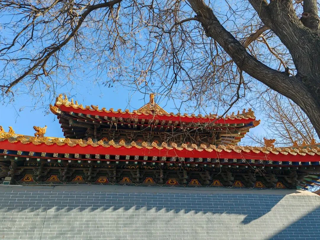 听着歌,看看路边冬天的树和田,感觉没多久,十方院那大门就瞅见啦。
