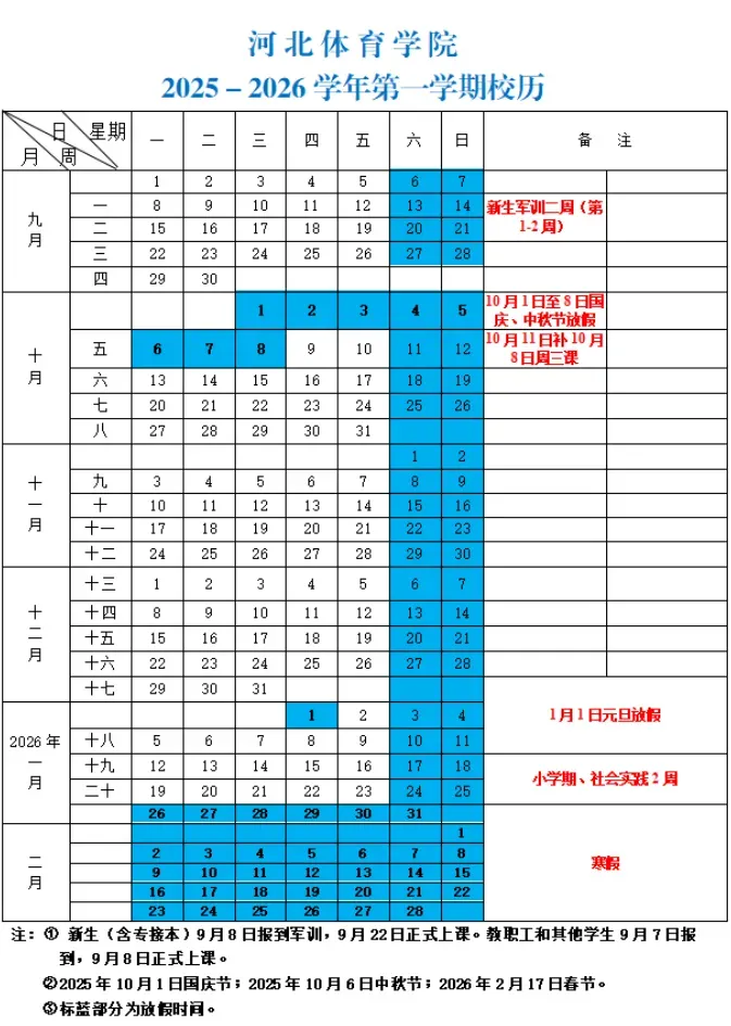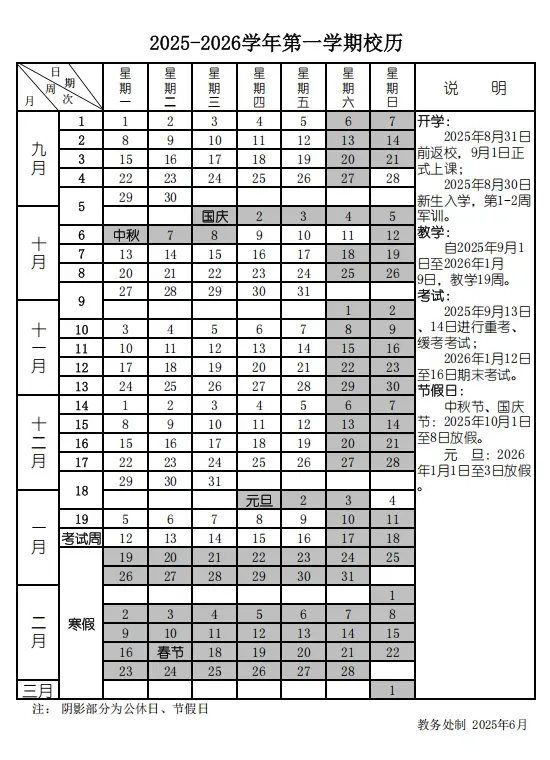 2025-2026学年第一学期校历表