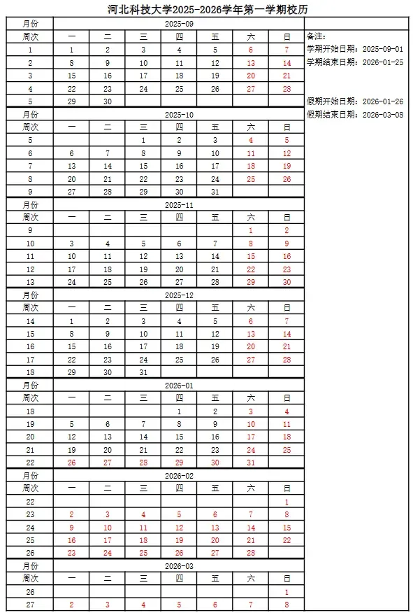 2025-2026-1学期校历