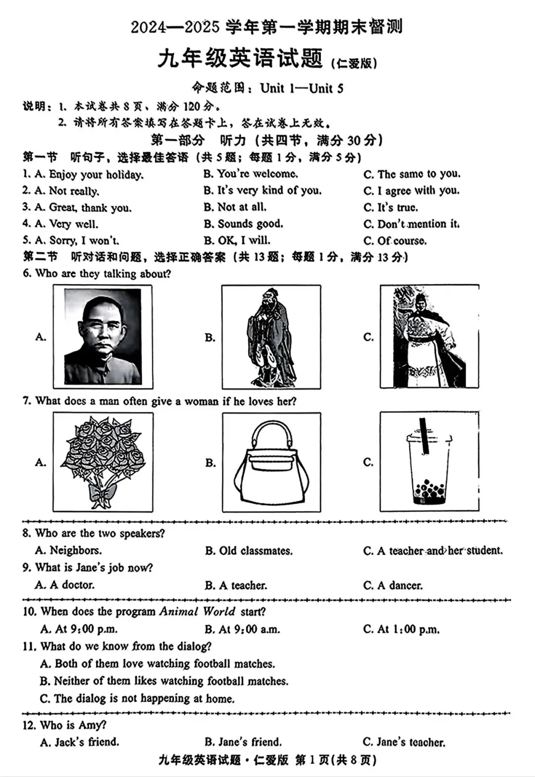>邢台市2024—2025学年第一学期九年级期末英语试卷