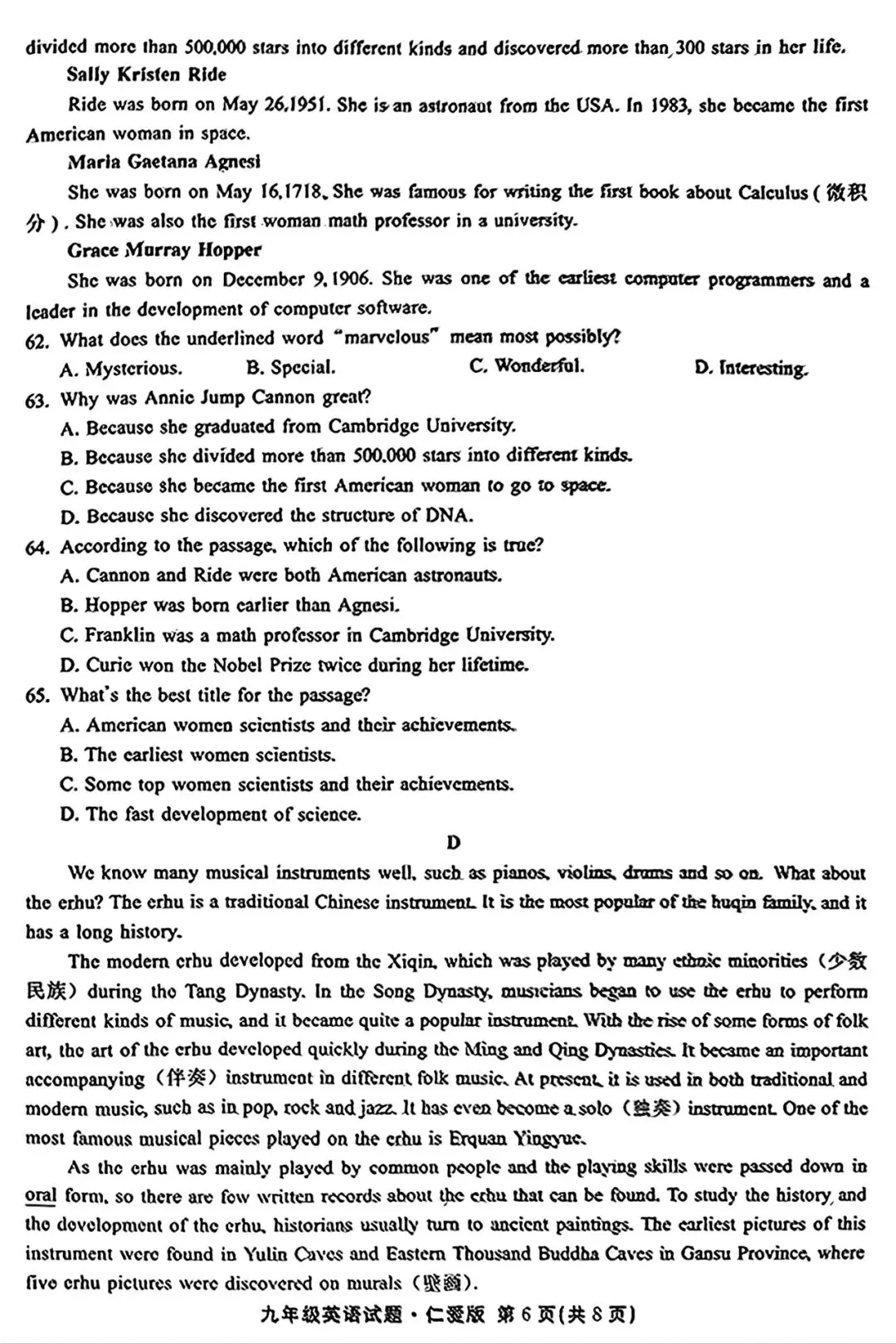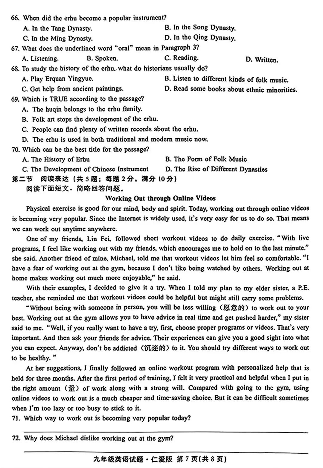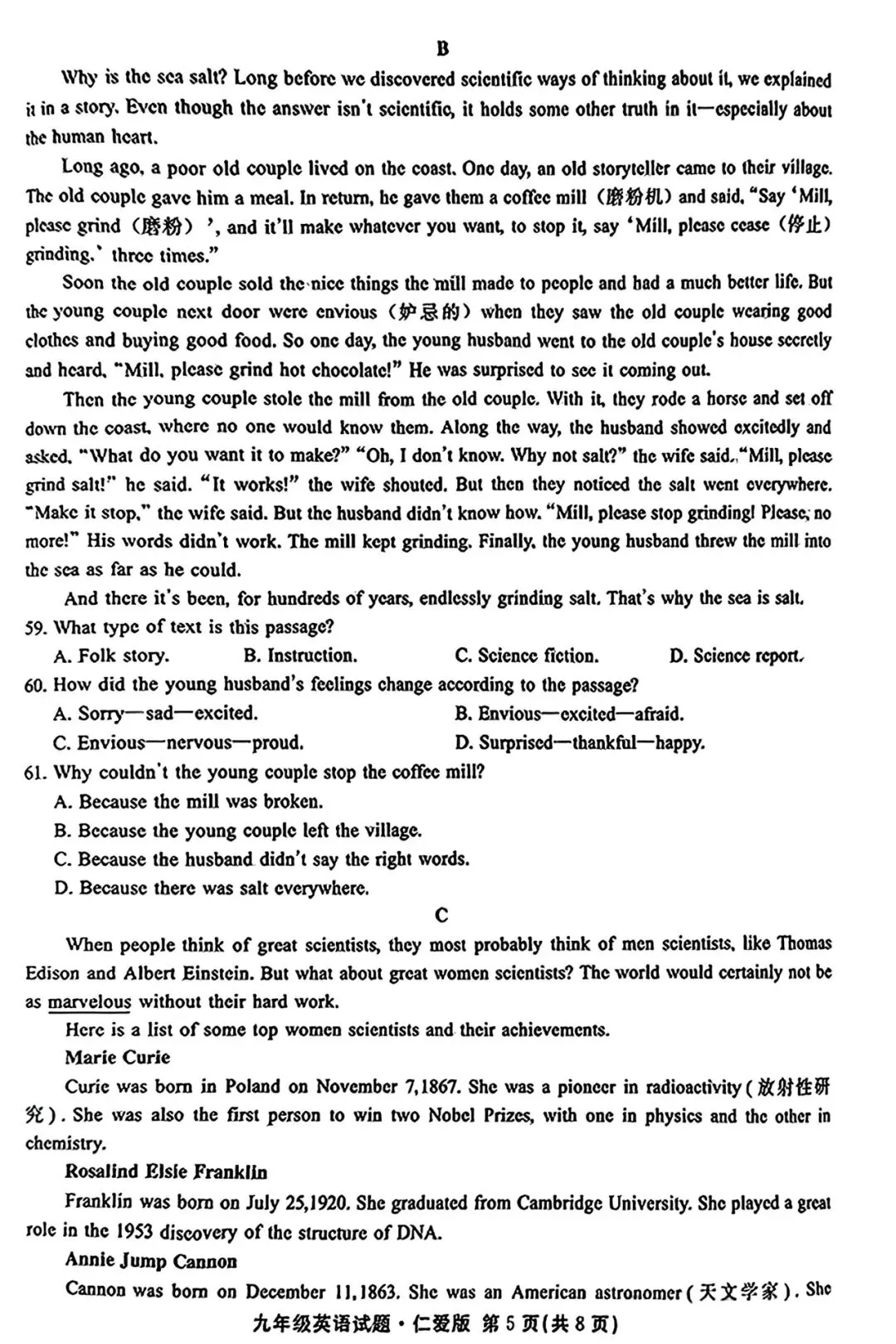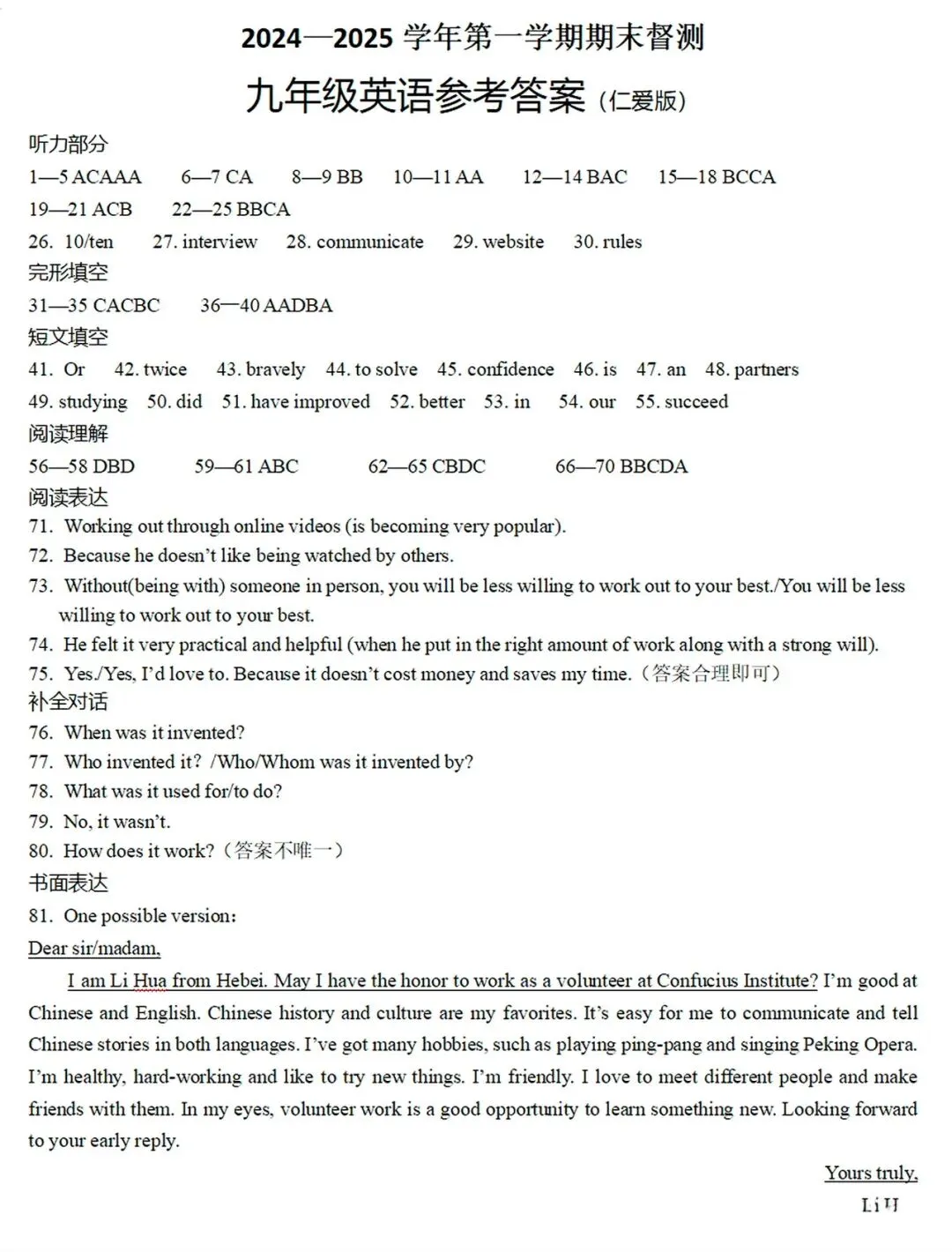 邢台市2024—2025学年第一学期九年级期末英语试卷