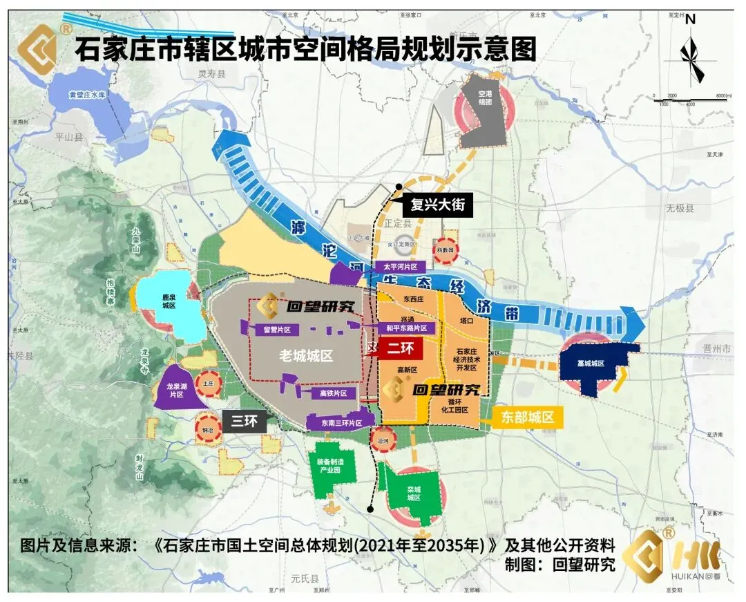 更为重要的是,2024年完成市政化改造的复兴大街,一只手托着二环内的中心城区,以城市功能为核心,其常住人口密度已经达到惊人的1.8万人/平方公里;其另一只手则托着由长安区东部新城、高新区核心区,以及主打生物医药和电子信息两项千亿级产业的南部新城,以产业功能为核心,是石家庄做强硬实力的主要载体。2022年开始,复兴大街便有了「新中轴」的名字。