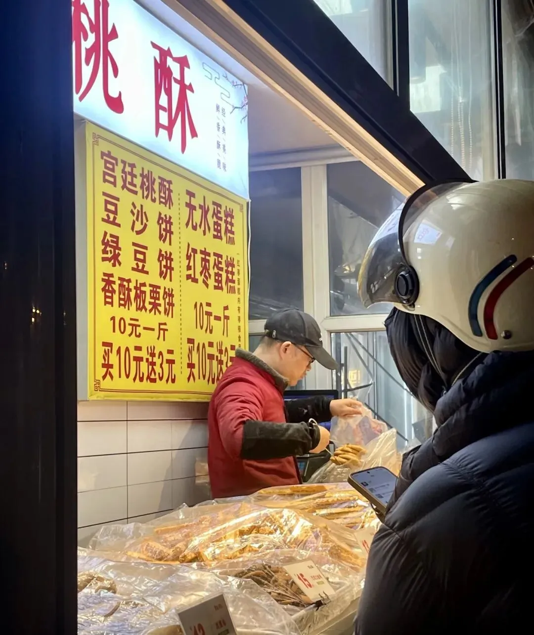 总之桃酥别多买,少来点,吃完再去,真的香酥脆的口感,冬天人很多傍晚去品类全,需要排一会会儿,窗口的香味儿脾胃都有正反馈!值