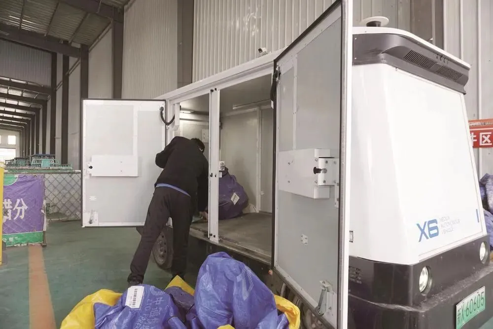 魏县中通快递工作人员茜麦堂拿出手机,熟练地通过云端“驾驶”无人车到达指定位置。他点击“开柜门”,车辆的柜门即打开。装满车厢后,关闭柜门,选择投递的快递站点,无人车就开启了配送工作。