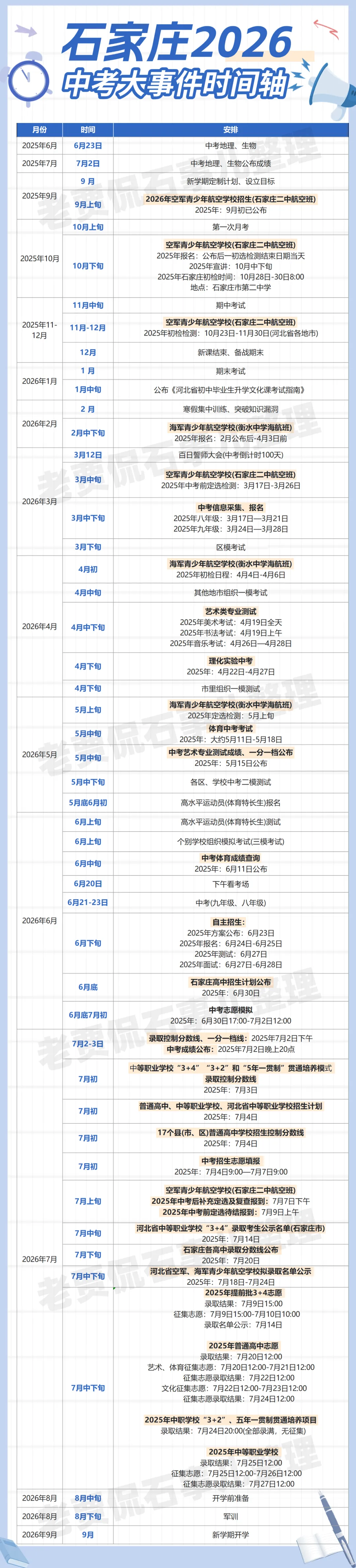 >【最新版】2026年石家庄中考时间轴!