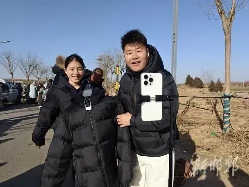 除了初次“触网”的村民,大集的流量还吸引了不少专业网红。在抖音拥有14万粉丝的“小伟同志”早早便来到集市,直播间里,他正卖力推荐着邯郸本地生产的雪驰羽绒服。“雪驰是咱本地的老牌子,不仅充绒量大,价格还便宜,现在市面上羽绒服动辄上千元,咱这二三百元就能买到一款暖和的。”他拿着羽绒服对着镜头展示,弹幕不断滚动,下单提示音此起彼伏。小伟告诉记者,刚直播不到一小时,就已经销售了近百件羽绒服。