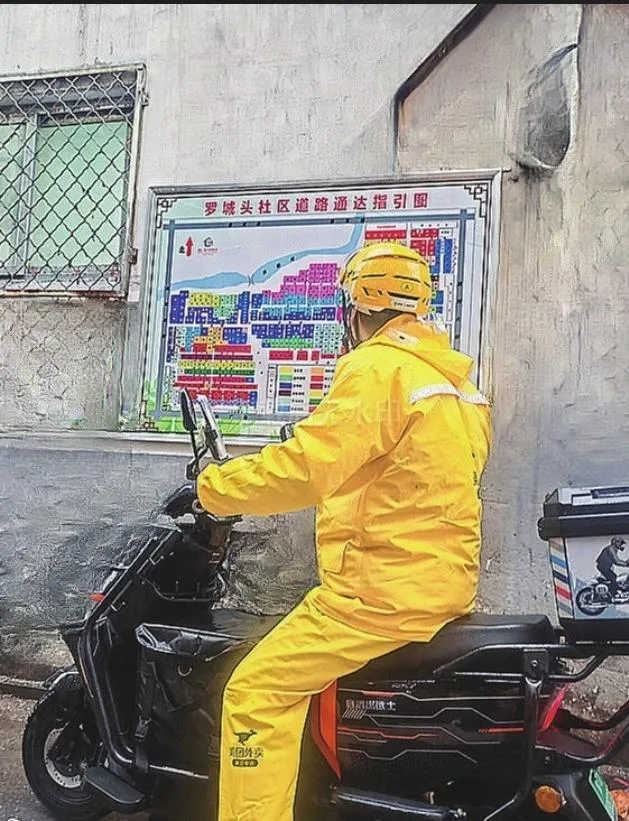复杂的道路条件成为配送的最大障碍。社区内30余条大小道路与胡同如“蛛网”般纵横交错,部分街巷狭窄到两辆电动车并行都困难。更让骑手头疼的是寻路难题:导航在这里几乎失灵,订单地址却常常只写“某巷子左转第几家”之类的模糊描述。骑手们不得不依靠零碎线索和记忆,在迷宫般的小巷中艰难推理位置,一旦误入死胡同只能折返重来,超时成了家常便饭。这不仅让骑手备感压力,居民也常因送餐延迟而不满。