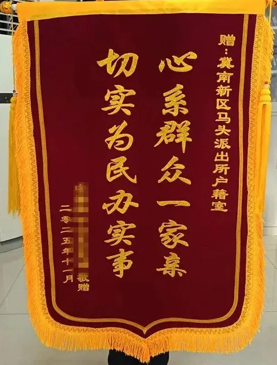 11月24日,该群众委托其妹妹专程送来锦旗,对马头派出所工作人员不畏繁琐、加班奋战的工作作风和贴心高效的服务表示衷心感谢。