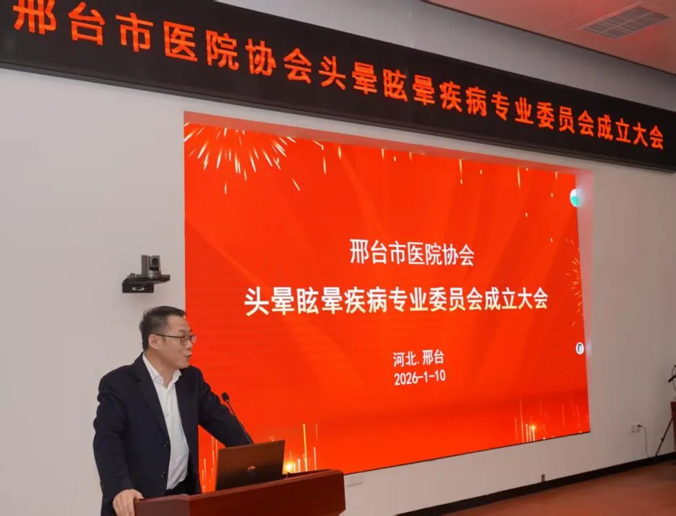 2026年1月10日,邢台市医院协会头晕眩晕疾病专业委员会成立大会暨基层医院头晕眩晕规范诊疗学术会在邢台市人民医院顺利召开。全市各级医疗机构神经内科、耳鼻喉科、中医科、针灸理疗科等相关领域专家学者齐聚现场,共同见证专委会成立,共商基层头晕眩晕疾病规范诊疗发展。邢台市医院协会会长刘贵禄、邢台市人民医院副院长李辉出席会议。