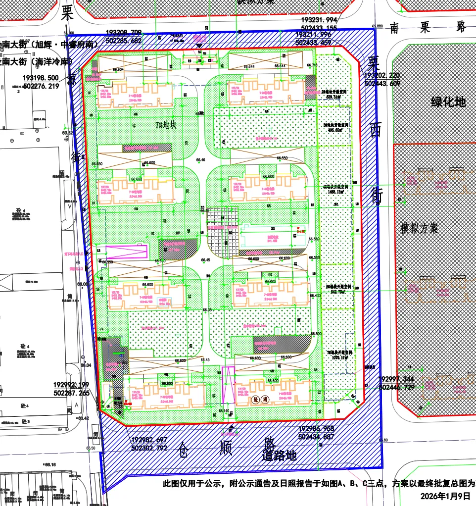 石家庄市自然资源和规划局依石家庄市裕华区裕翔街道南栗社区居民委员会关于南栗城中村改造7#地块项目的报建申请,正在审查设计方案。