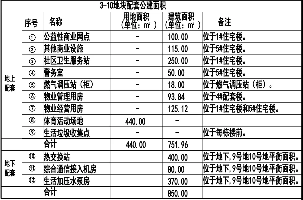 配套公建包括体育活动场地、物业经营用房、微型消防站、生活垃圾收集点、集中绿地等。