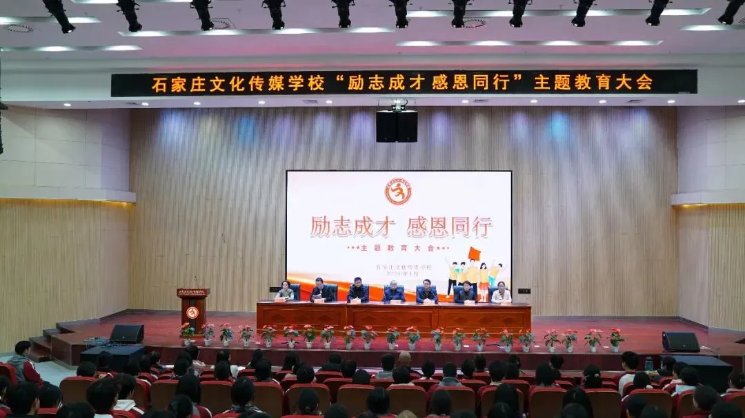 冬日暖阳沐人心,逐梦青春正当时。2026年1月8日,石家庄文化传媒学校隆重举行“励志成才 感恩同行”主题教育大会。获得国家奖学金、助学金的学生齐聚一堂,共同见证荣誉时刻。
