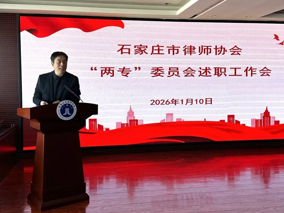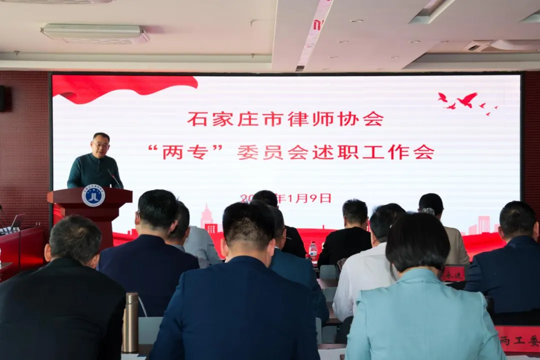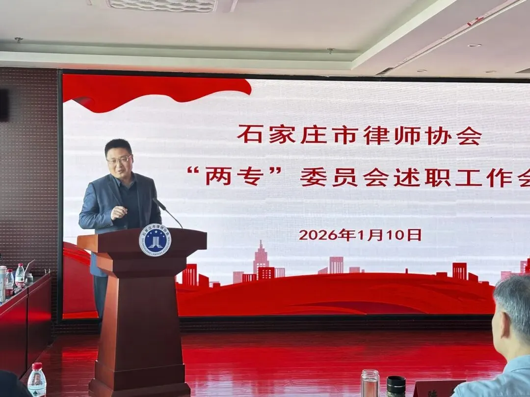 2026年1月9日至10日,石家庄市律师协会召开“两专”委员会述职工作会,本次考评针对2024年7月至2025年12月期间,各专门委员会与专业委员会的工作情况开展。考评工作坚持评价标准客观、全面,考核过程公开、透明,考核结果公平、公正的原则,采取书面考核和现场述职相结合的方式,重点围绕工作计划、工作质效、主任履职、重点工作等核心内容开展述职评议;各相关单位在述职中深入反思了年度工作存在的不足,明确了后续改进思路及具体措施。