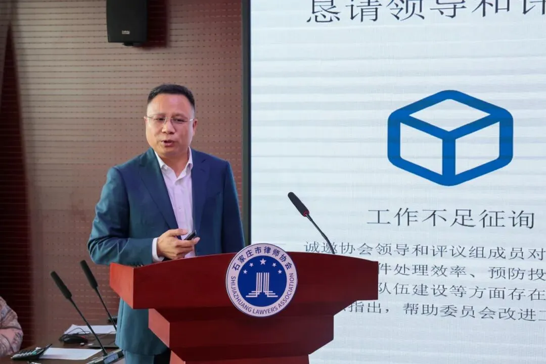 现场述职工作会上,石家庄市司法局律师工作管理科科长齐永进发言,他希望各委员会总结出工作亮点、工作特色,更好地引领和带动行业发展。