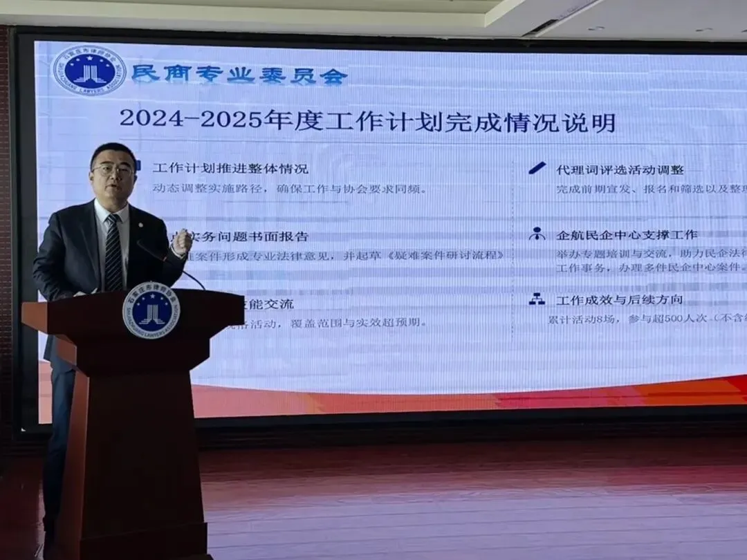 市律协会长张继新对专委会下一步工作提出明确要求。他表示,各专委会要进一步提升活动流程规范性,兼顾工作实效与资料积累,鼓励各专委会在合规前提下积极开展形式多样的活动,并及时总结提炼经验成果。他同时要求,要持续加强专委会之间的协同联动,促进资源共享与经验互通;全体成员需认真履行专委会职责,充分发挥专业引领与桥梁纽带作用,主动搭建行业交流合作平台,共同推动律师业务向更高水平发展。