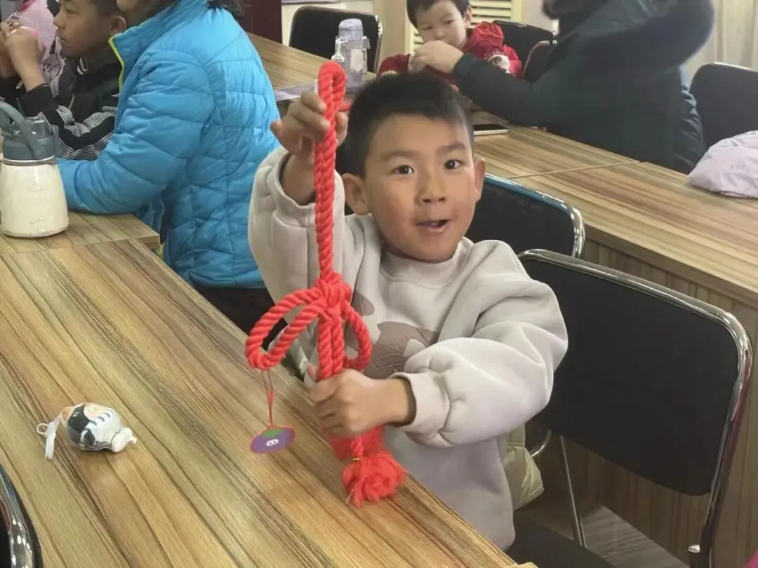 随后,活动进入手工DIY中国结环节。志愿者老师详细讲解了中国结的历史渊源和文化内涵,并通过现场演示,手把手指导孩子们如何制作精美中国结。从选材、编织到打结,每一步都充满乐趣与挑战,大家默契配合,普通红绳在指尖翻飞,化作一个个色彩鲜艳的中国结,承载满满的美好期盼。