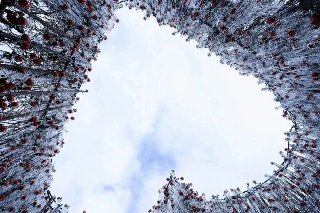 爱心形状的冰洞,宛如一颗巨大的水晶之心,镶嵌在冰雪之中。