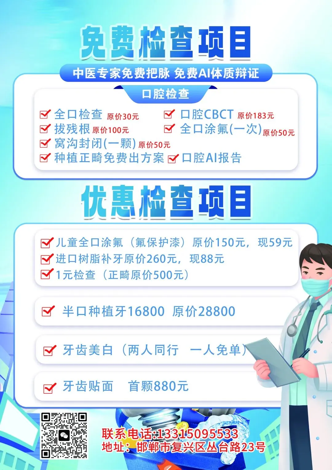 免费口腔检查种牙特惠名额有限,先到先得!