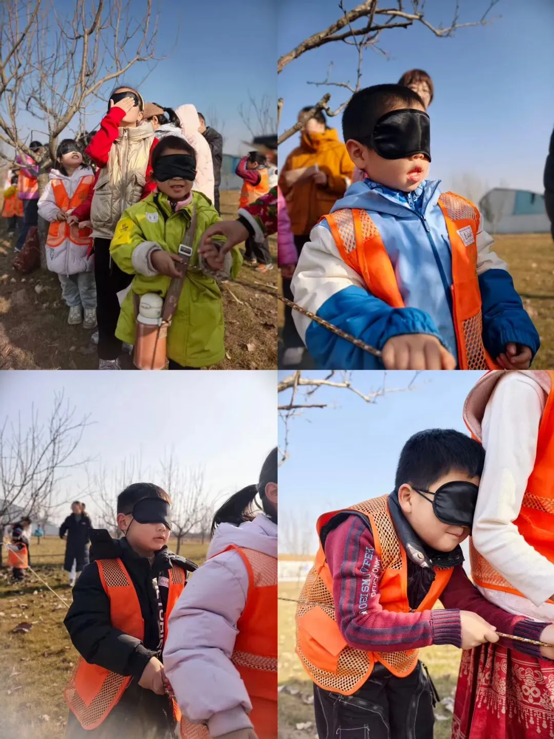 蒙上眼睛,牵着爸爸妈妈的手慢慢前行,