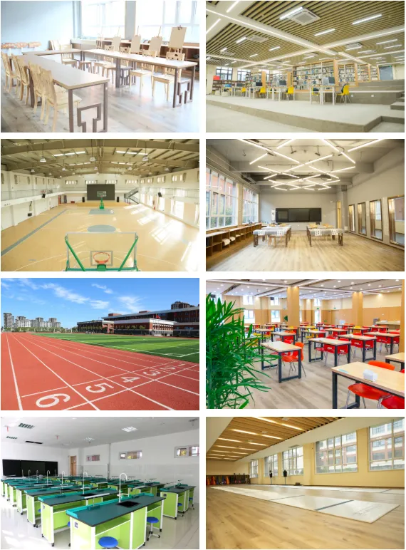 学校占地面积54亩,建筑面积27306.71㎡,设计科学合理,功能齐全、设施一流、特色突出、环境优美,建有高标准的塑胶运动场、报告厅、图书馆、篮球馆、羽毛球馆、餐厅、学校配有陶艺教室、书法教室、美术教室、舞蹈教室、音乐教室、击剑教室等16个现代化多功能教室。