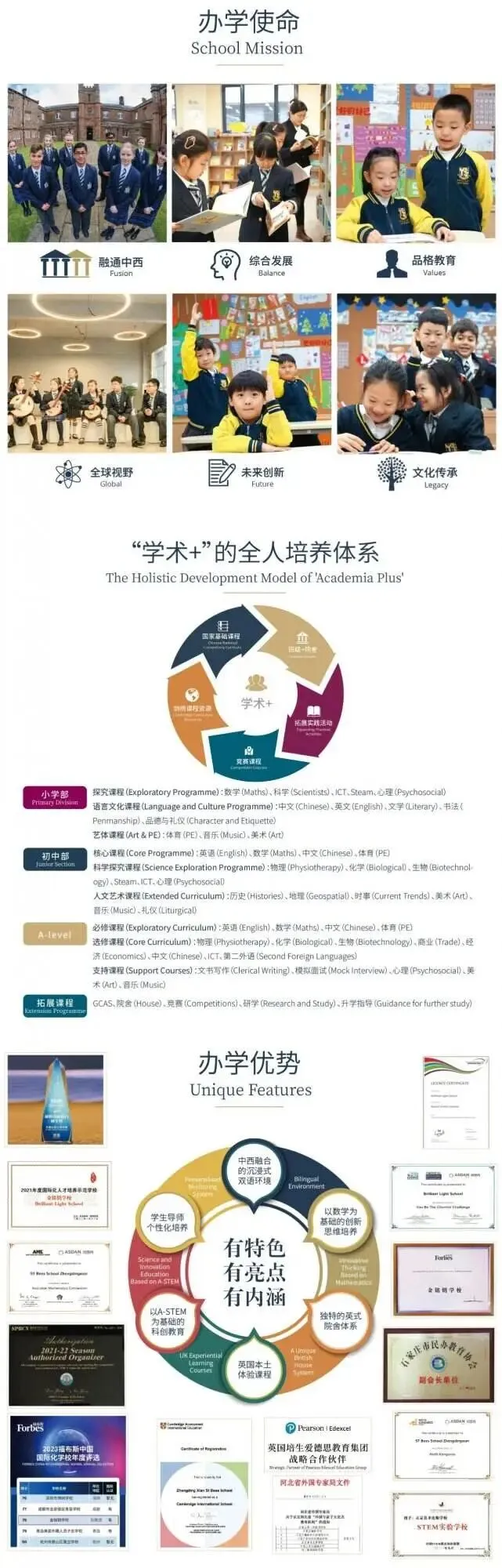 作为省会首家剑桥国际认证学校,不仅为学生提供了纯正的中英双语教学环境,以及独特的融合教育理念。还在学生活动中采用英式院舍进行分组管理,更好地保留了寓教于乐的基本需求,打破了学生年龄,性别差异,以及性格喜好的限制。从根本上解放学生们自发学习,主动探索知识,彼此协作成长的天性。院舍制,以老生带新生的创新培育模式进行。有助于培养学生的领导力,发掘领袖特质,强化学生的集体荣誉感,提高团队合作意识,为之后在广阔的世界舞台上自信、优雅的生活做好准备。
