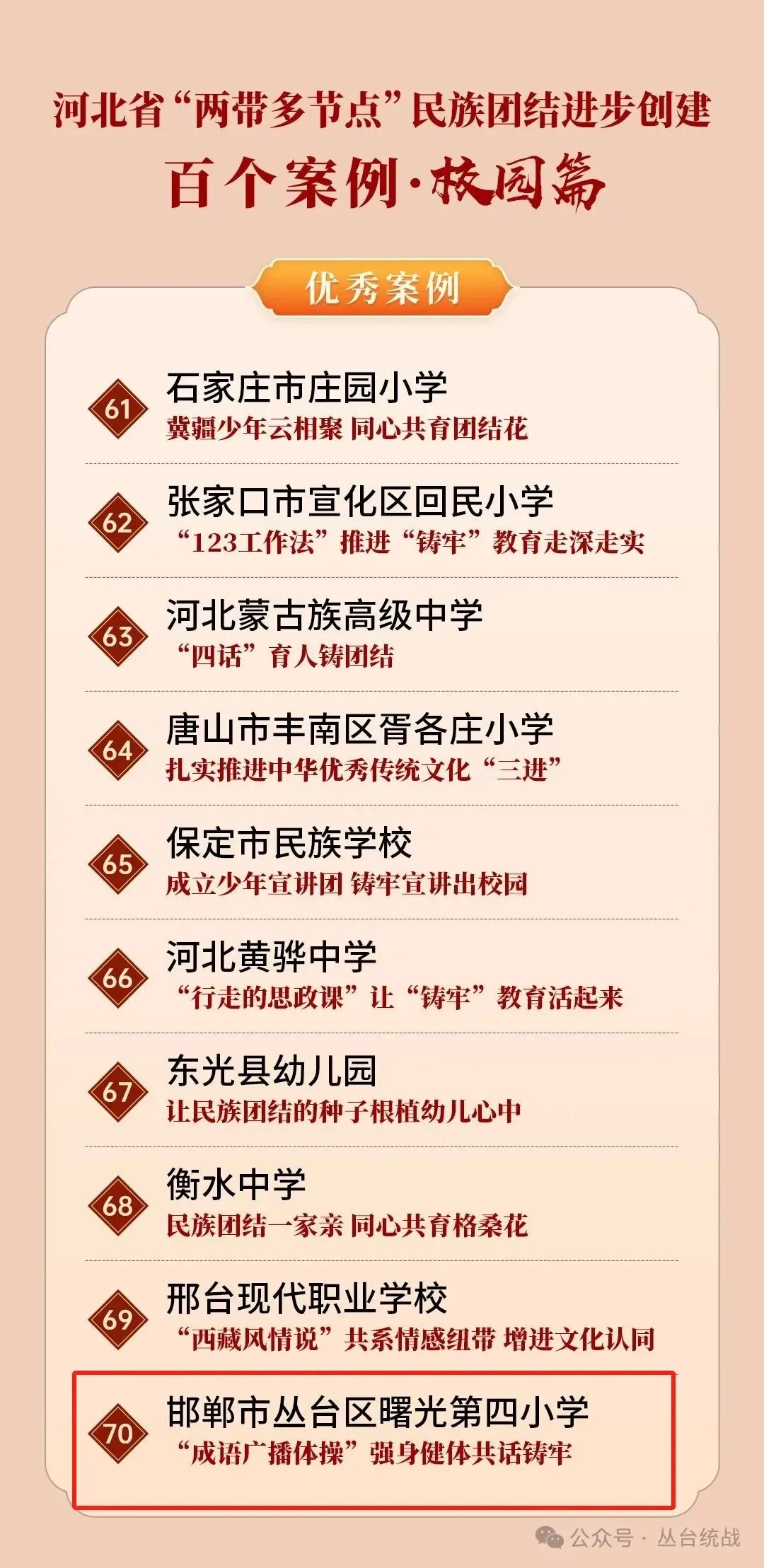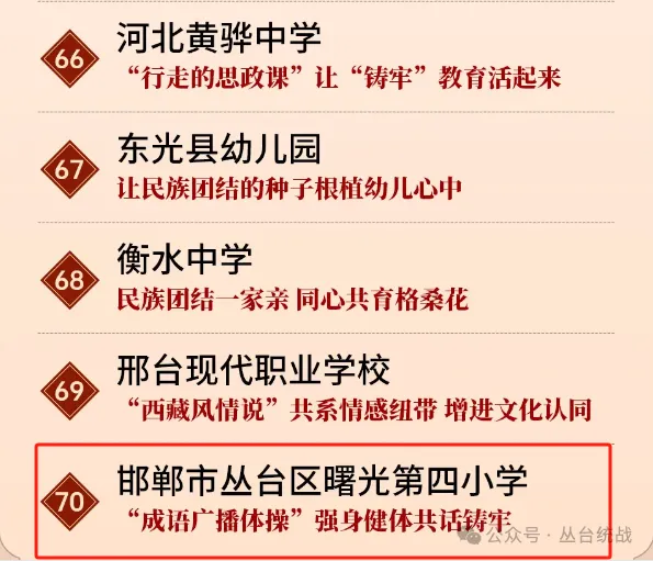 名单揭晓!邯郸市丛台区曙光第四小学入选河北“两带多节点”民族团结进步创建百个案例