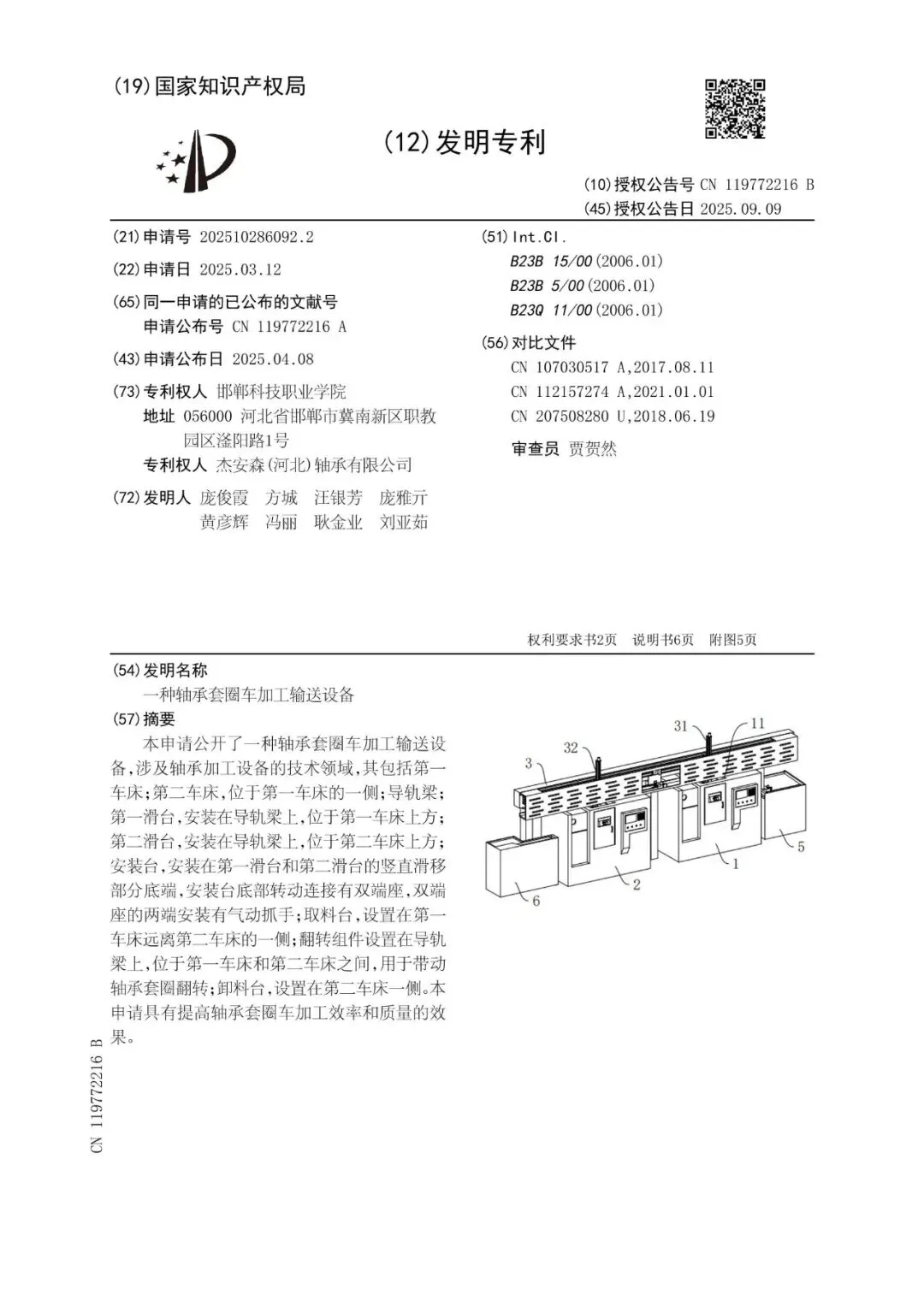 邯郸发明专利巡礼——"一种轴承套圈车加工输送设备"