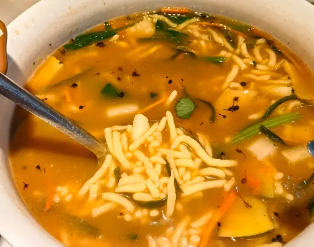 最值得一试的是“抿节”。做法其实简单,绿豆面掺着小麦粉,揉硬了,用特制的床子压进滚水里。煮熟捞起,不过凉水,浇上素卤子——通常是韭菜、鸡蛋、豆腐丁,再淋点老陈醋和辣椒油。拌开了,呼噜一口,口感不是滑溜,而是带着点粗粮的颗粒感,嚼着劲道,越嚼越香,那是庄稼地里长出来的味道,汤一喝,人就醒了。